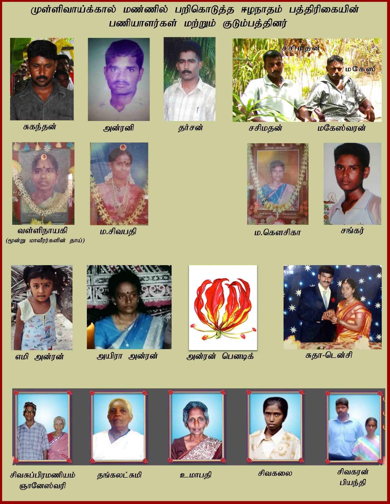 இவ்வேளையில், ஈழநாதம் பத்திரிகை நிறுவன பணியில் ஈடுபட்டிருந்த வேளையில் சிறிலங்கா படையினரின் தாக்குதலில் சிக்கி உயிரிழந்த சசிமதன், நல்லையா மகேஸ்வரன், மரியநாயகம் அன்ரன்பெனடிக், வவா மேரிடென்சி, மரியருளப்பன் அன்ரனிகுமார், சங்கரசிவம் சிவதர்சன் மற்றும் சத்தியநாதன் ஆகியோரை இவ்வேளையில் நினைவு கூறுவதுடன் ஈழநாதம் மக்கள் நாளிதழ் இறுதிவரை வெளிவருவதற்கு அயராது பாடுபட்ட பணியாளர்கள், போராளிகள் மற்றும் பொதுமக்களிற்கும் நன்றி கூறி நிற்கின்றோம்.