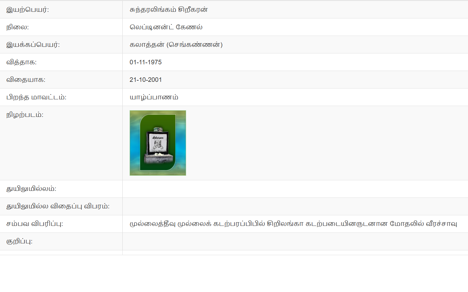 அக்காவை பார்க்க வீட்டுக்குச் சென்ற எனக்கு உன் அதிர்ச்சி செய்தியே கிடைத்தது. உன் நண்பர்கள் வந்தார்கள். சம்பவத்தை கூறினார்கள். வீடு அதிர்ந்து போனது. ஐயோ ஐயோ என்ற குரல்கள் வானெழுந்தன. அருகில் இருந்த உறவுகள் வீட்டில் கூடினார்கள். மஞ்சள் சிகப்பு கொடிகள் உன் வீடெங்கும் நிறைந்து கிடந்தன. தகரக்கொட்டகை போடப்பட்டு புலிக்கொடியின் முன்னே நீ திருவுருவப்படமாக இருந்தாய். பூக்கள் உன் மேல் மாலைகளாகவும் இதழ்களாகவும் கிடந்தன. நெஞ்சு வெடிக்கும் சோகம் எங்கள் எல்லோருக்கும் நிறைந்து கிடந்தது.